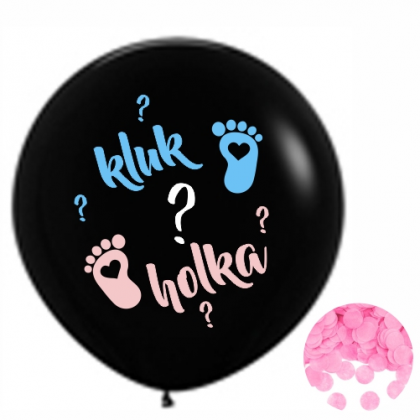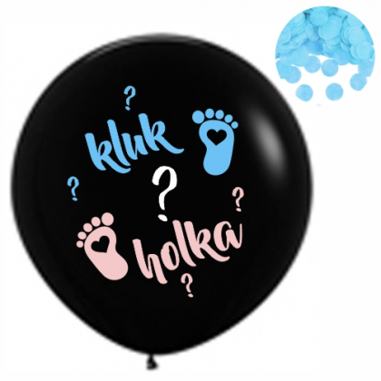 Balónek KLUK nebo HOLKA? je černý, neprůhledný s farebným nápisem Kluk nebo Holka? a naplněný modrými / růžovými papírovými konfetami. .Odhalte pohlaví dítěte netradičně, řekněte to balónkem. Růžové nebo modré konfety po prasknutí balónka prozradí pohlaví dítěte.