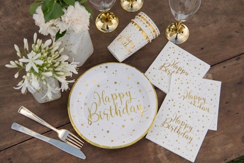Běhoun na stůl, s potiskem Happy Birthday je vhodným doplňkem každé narozeninové oslavy či jiné..